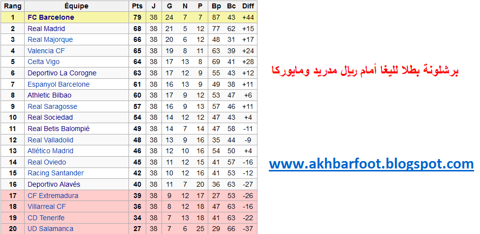 الماسة Foot ترتيب الدوري الإسباني 1999 1998
