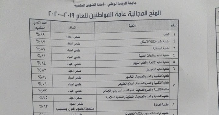 نسب و رسوم قبول جامعة الرباط غدا آخر يوم اخبار جامعة الرباط الوطني فيسبوك
