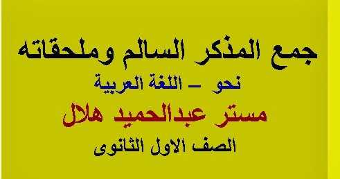 لغة عربية أولي ثانوي ت2 6 النحو جمع المذكر السالم وملحقاته الصف الاول الثانوى تيرم ثان